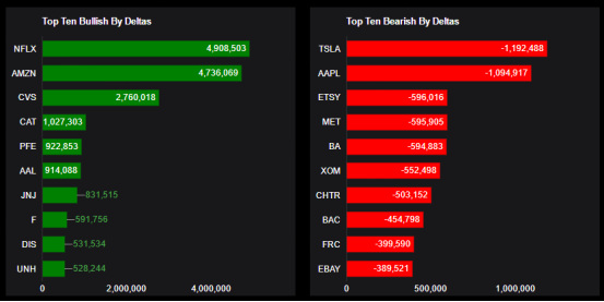 Top 10 bullish stocks: NFLX, AMZN, CVS, CAT, PFE, AAL, JNJ, F, DIS, UNH