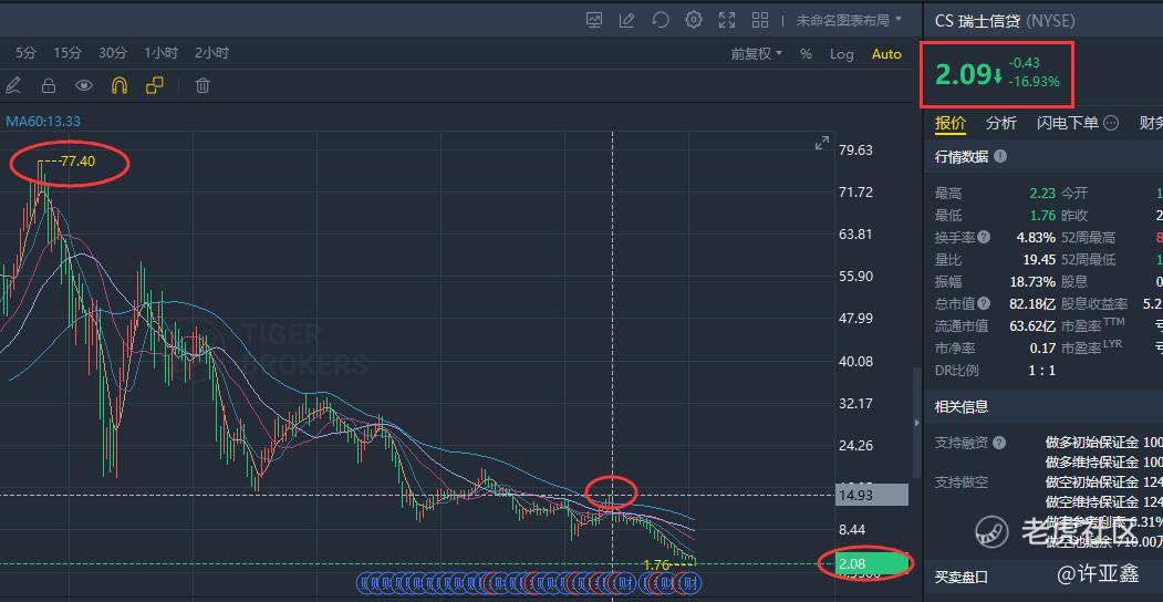 Saudi National Bank, Credit Suisse's largest shareholder, ruled out more assistance to Credit Suisse, raising fears that Credit Suisse's problems could worsen. Credit Suisse's one-year credit default swaps (CDS) are close to 1,000 basis points, which is 20 times that of UBS and 10 times that of Deutsche Bank. The higher the CDS number, the greater the probability of default. As shown in the above figure, Credit Suisse's share price once hit a high of US $77.4 before the subprime mortgage crisis in 2007, and once rebounded to US $15 before the thunder in 2022. Now its share price has even fallen below US $2, which makes people cry. Old America waved a sharp sickle and harvested this "ally" of Europe.