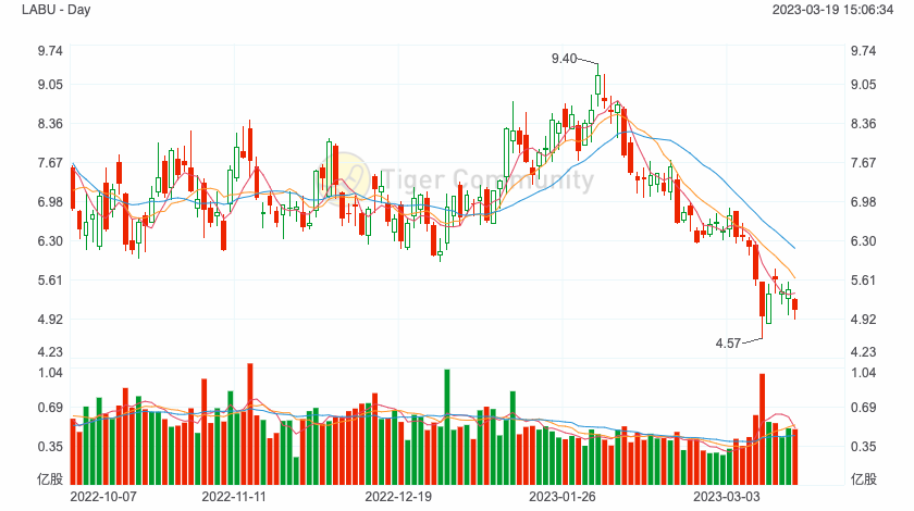 $S&P Biotech Bull 3X Shares(LABU)$ $Invesco QQQ Trust(QQQ)$ $SPDR S&P 500 ETF Trust(SPY)$ super oversold but the chart speaks for itself. Retest of a large prior support toward six and rejection will be a short play even a monkey could execute just be patient.