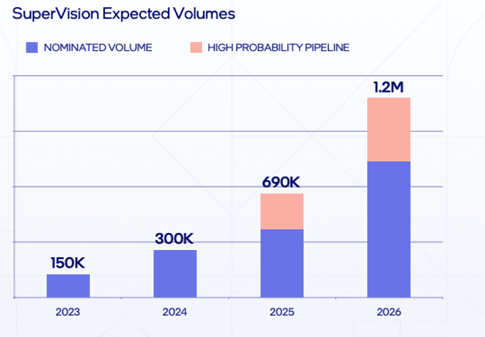 In addition, the introduction of SuperVision into European OEMs will bring the total deployed units to an estimated 150,000. By 2026, 9 cars across 6 brands will be equipped with SuperVision and will result in an estimated 1.2 million units being on the road.