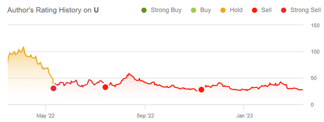 Before we go further, I believe that it's important to remind readers of my position on U over the past year.