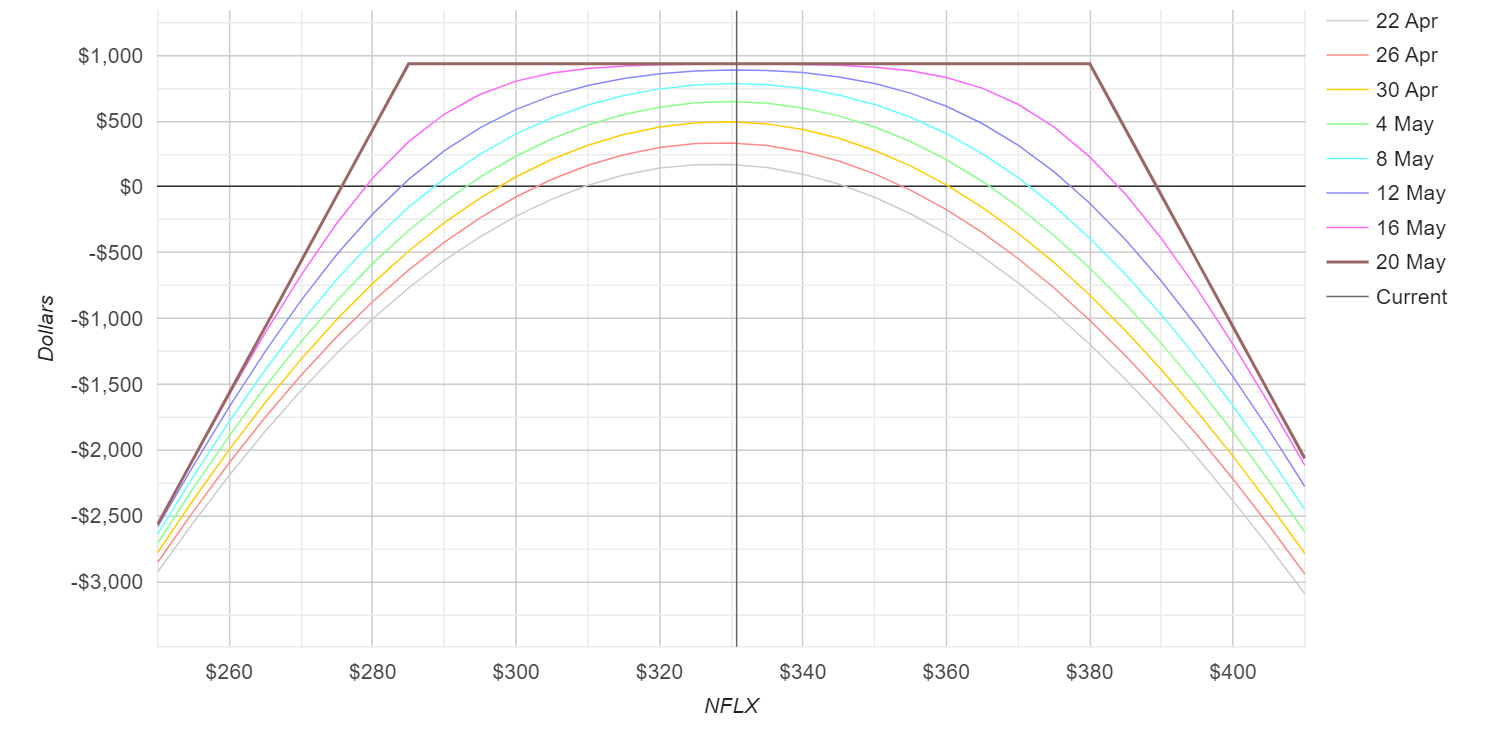 Reverse Strangle, such as selling PUT for $280-300 and CALL for $370-400.