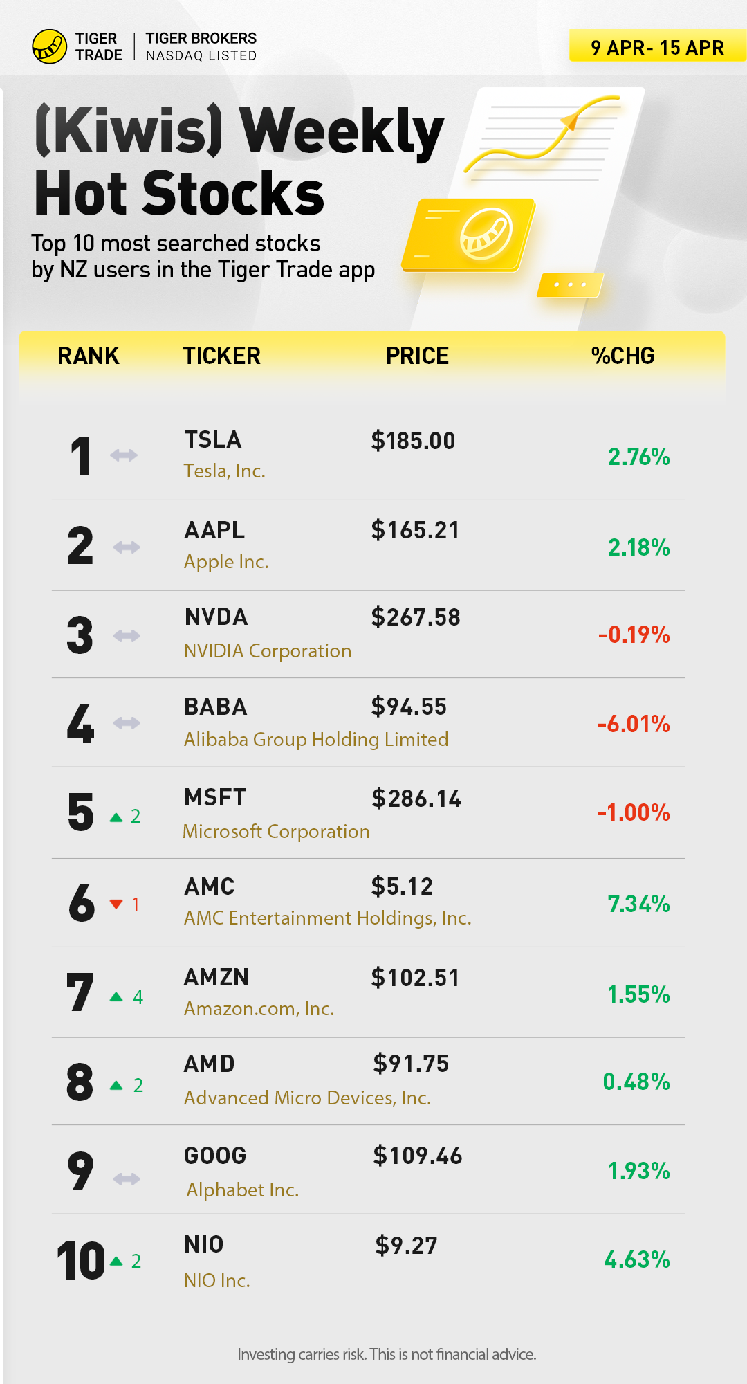 Here I will post the 10 most searched stocks by New Zealand users in the Tiger Trade App every week. Don't miss my updates!!!