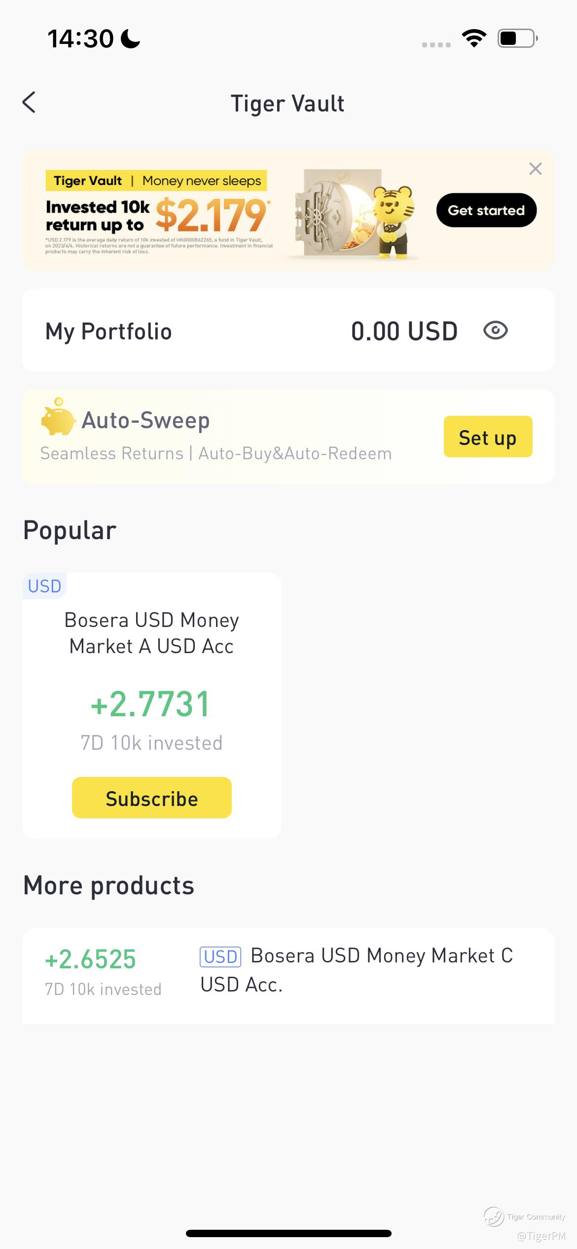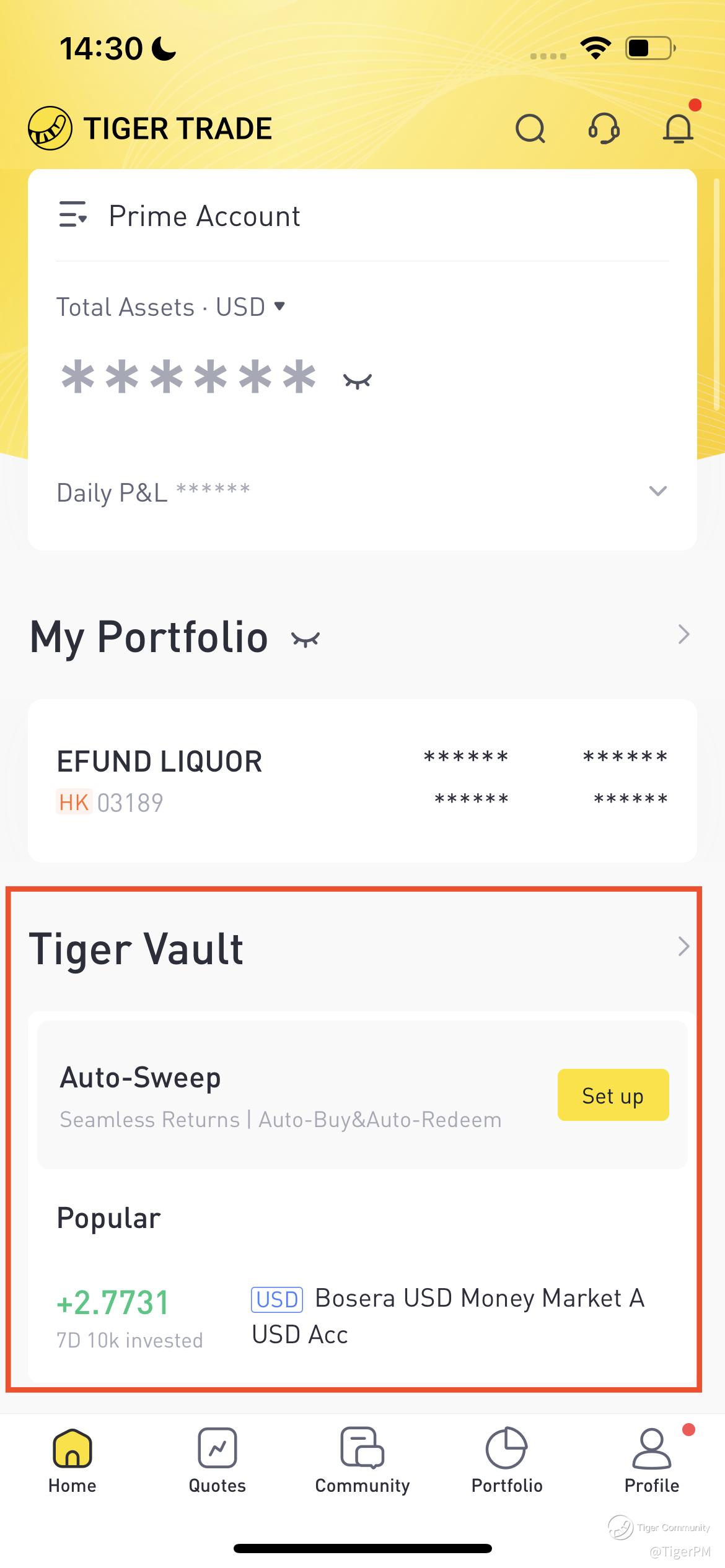 After the Auto-Sweep function is activated, Tiger Vault will be automatically included in the purchasing power, and the system will automatically complete the transfer of transaction funds. At the same time, Hong Kong investors will be provided with account balance value-added services to facilitate efficient investment.