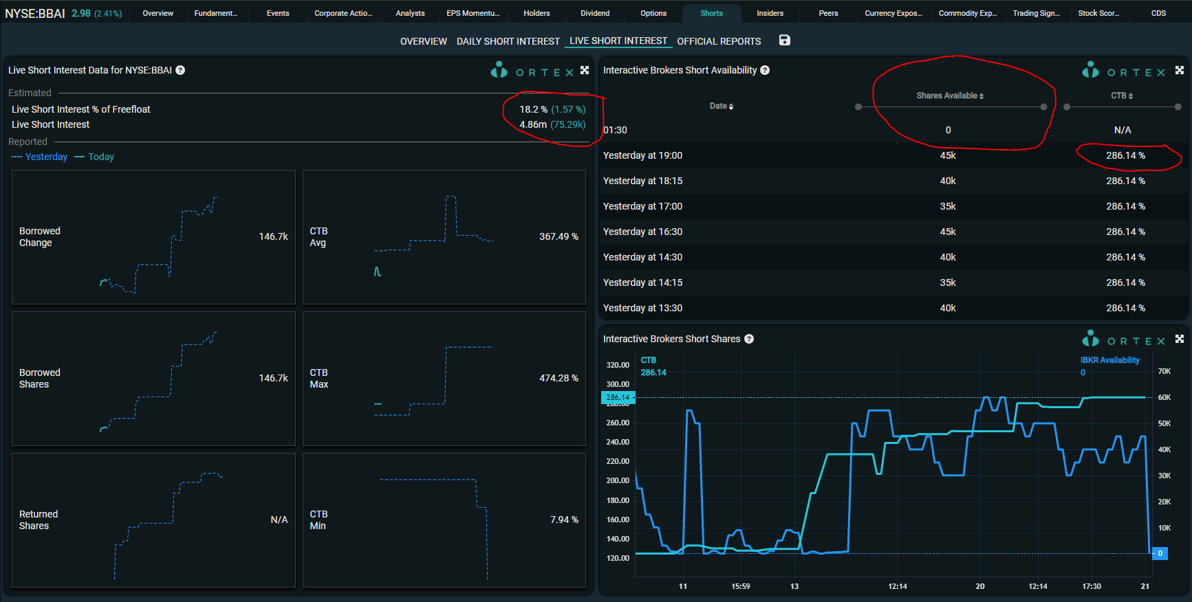 Is $BigBear.ai Holdings(BBAI)$ Looks like shorts used up their availability as markets opened to try and kill the momentum. No availability left, cost to borrow is high, short interest is high. Squeeze opportunity very likely! Time to push this up!