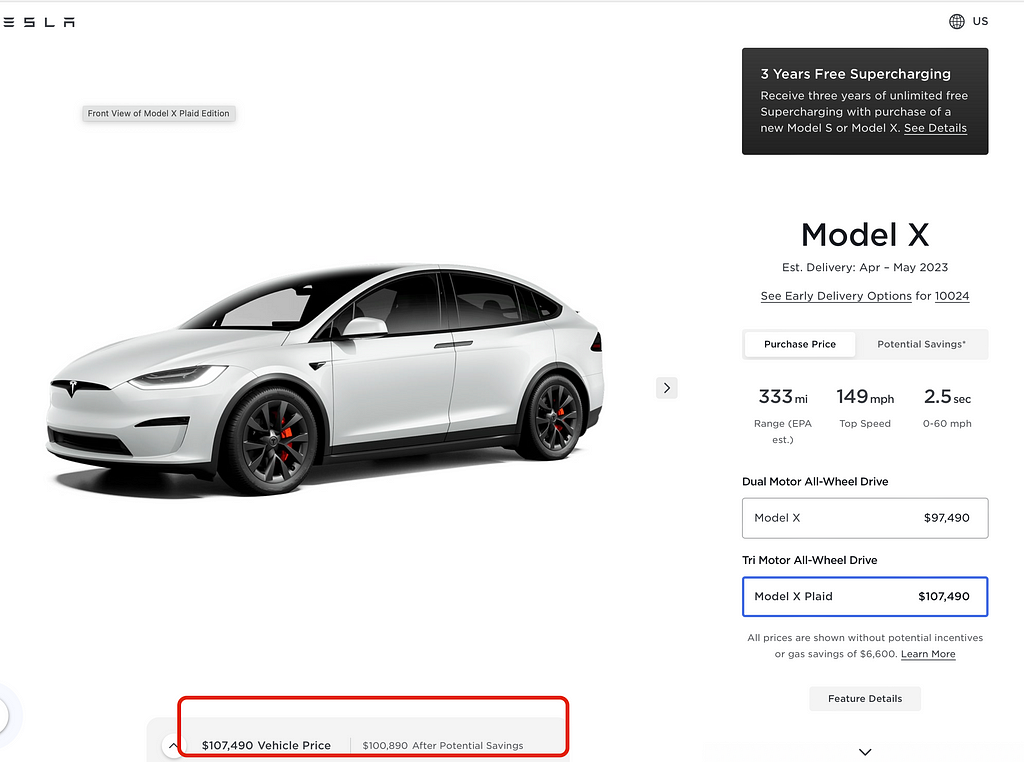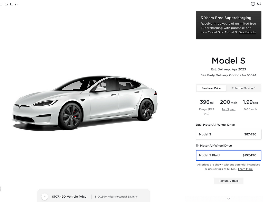 Tesla’s website now shows that the Model S Plaid and Model X Plaid, the performance versions of these vehicles, are priced at $107,490, up from $104,990.