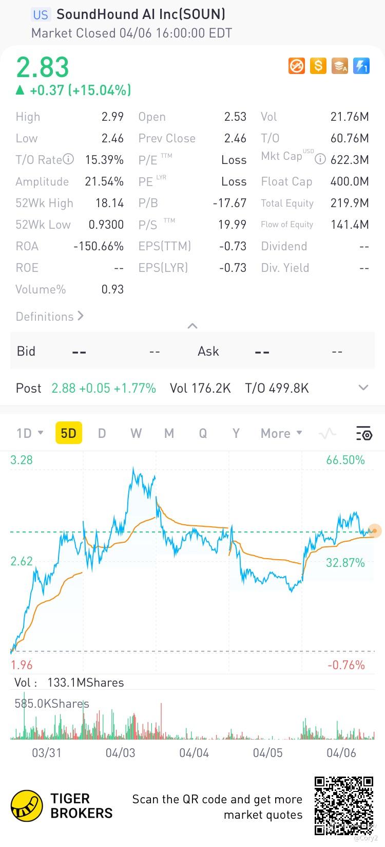 $SoundHound AI Inc(SOUN)$ So many people saying SELL, but I have bought (earlier). I guess time will tell whether this stock with profit or lose in the mid- long term (long termbeing my strategic play here).