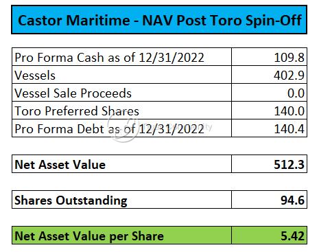 Looking at net asset value ("NAV") per share following the Toro spin-off, CTRM stock continues to trade at a massive 80%+ discount: