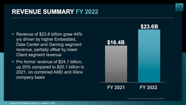 Overall, while the PC client business is undergoing substantial declines to burn off excess inventory, the team is exiting this downturn with a much more diversified business model, which is in part a reflection of the team's strategic initiatives. To put it into perspective, the PC client business for AMD is 15-17% ofsales,whereas Intel Corporation's (INTC) is 43-45% ofsales.