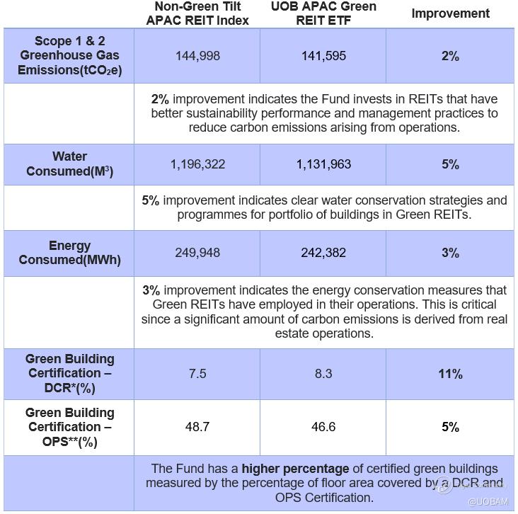 The investment objective of the UOB APAC Green REIT3 ETF4 (the “Fund”) aims to replicate as closely as possible, before expense5, the performance of the iEdge-UOB APAC Yield Focus Green REIT Index (“Index”).