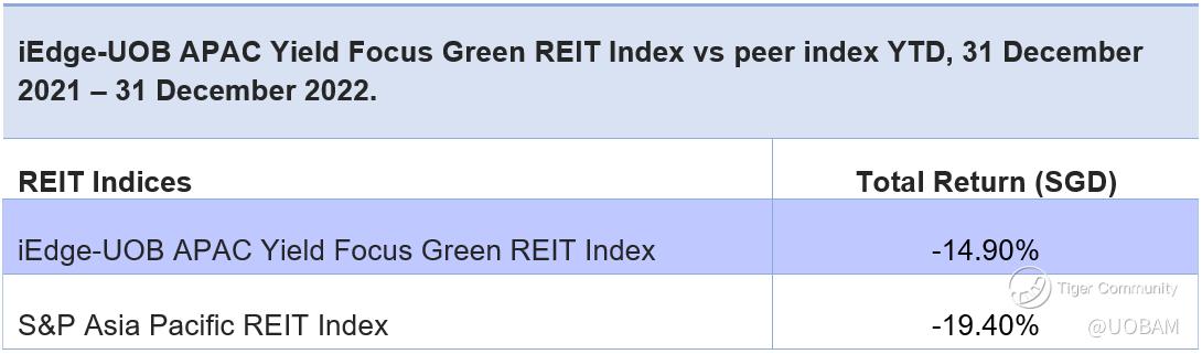 The Index outperformed its non-green peer S&P Asia Pacific REIT Index by 4.50 percent year-to-date (YTD).
