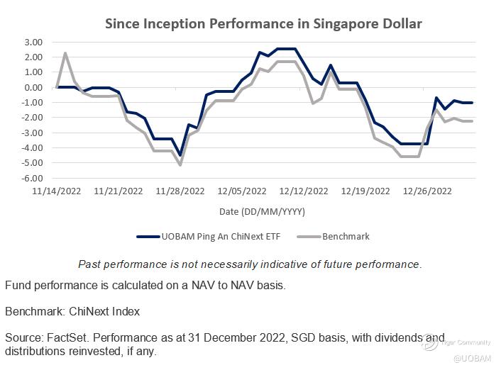 From its inception on 14 November 2022, the UOBAM Ping An ChiNext ETF[3] (the “Fund”) tracked the ChiNext index very closely with only very minor performance deviation that resulted from fees and initial deployment.
