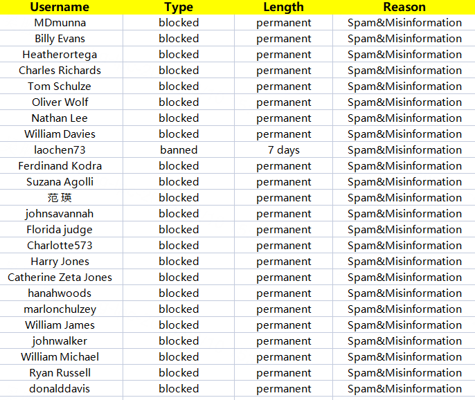 Here is the List of Banned Users for this week: