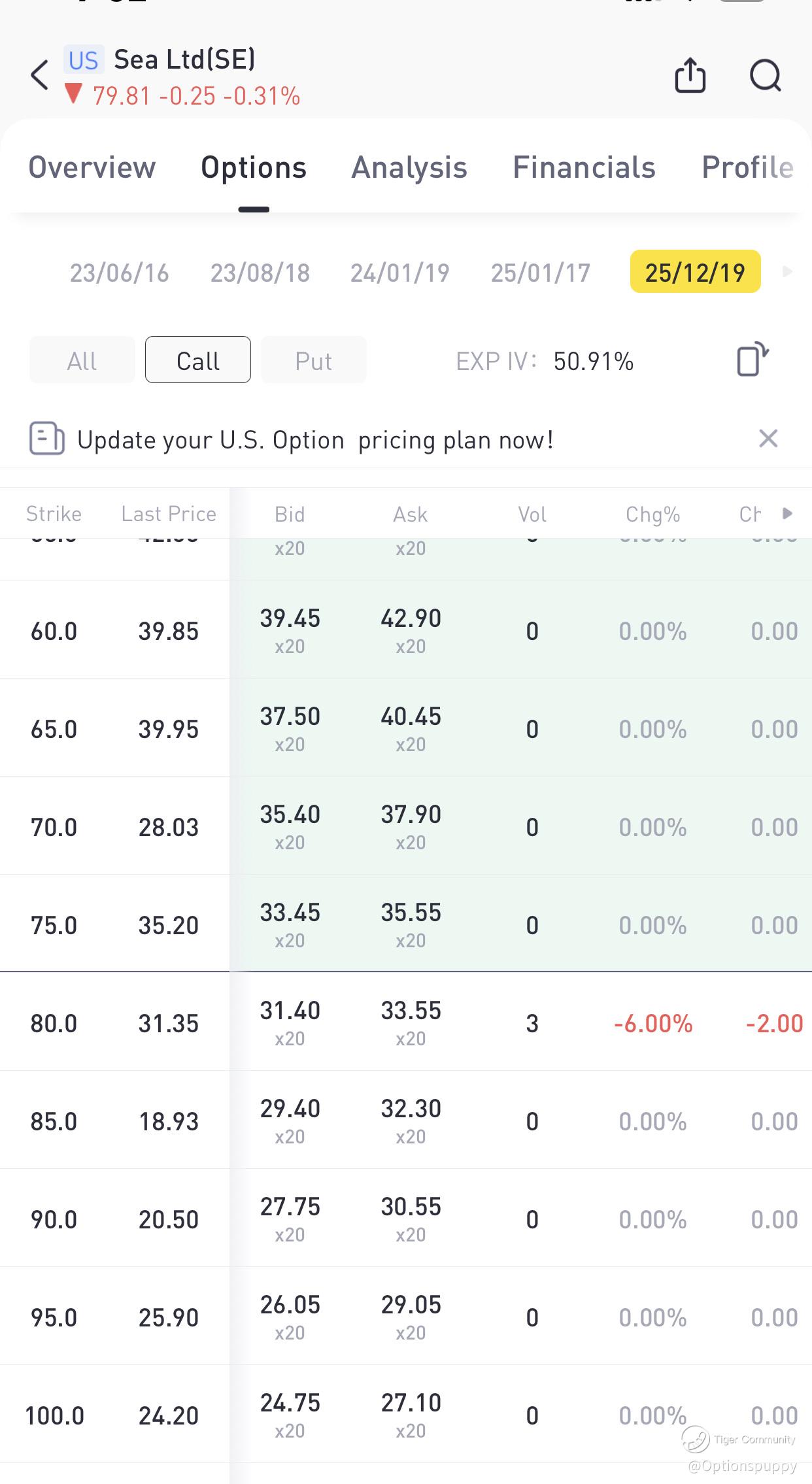 I used the options page usually to illustrate the trades I will do and also the I build chart picture to say what I want to do like for sea limited can sell call at good premiums
