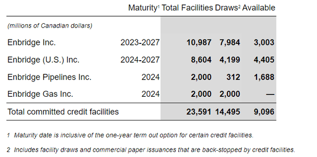 2022 was a year of substantial debt rescheduling for ENB. They have $1.9 bn due in May, '23, $5.5 bn in July of '24, and another $12.7 bn due between 2024 and 2027.