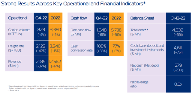 On Monday, ZIMreportedbetter-than-expected fourth quarter results with decent profitability and strong free cash flow generation: