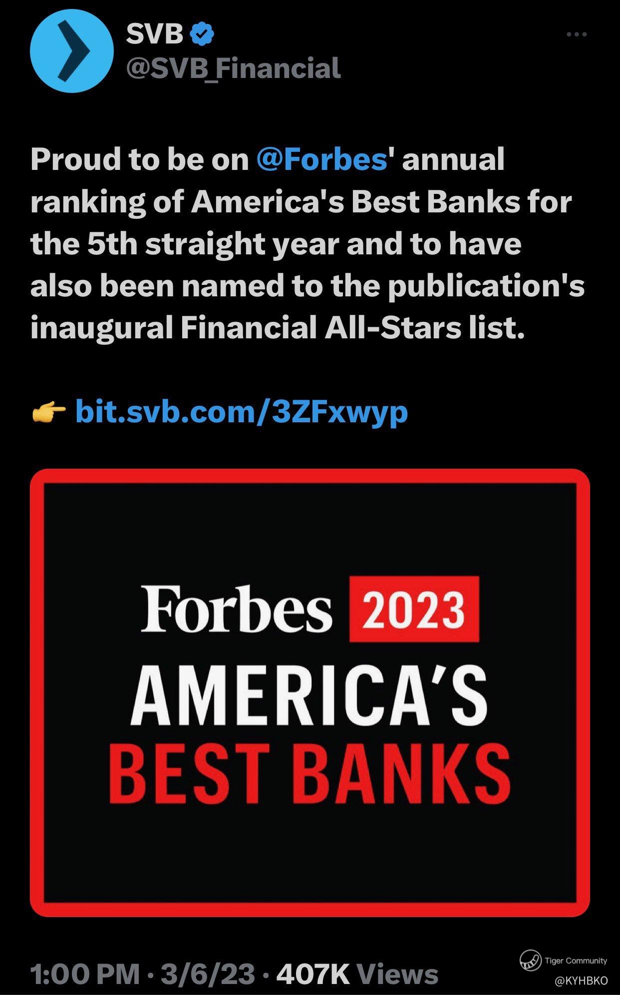 SVB has been hogging the headlines for all the wrong reasons as it suffered a dramatic collapse, forcing the government to intervene and the trading to stop. In fact, SVB has made it to Forbes’ list of America’s best banks in 2023 (post published on 6th Mar 2023).