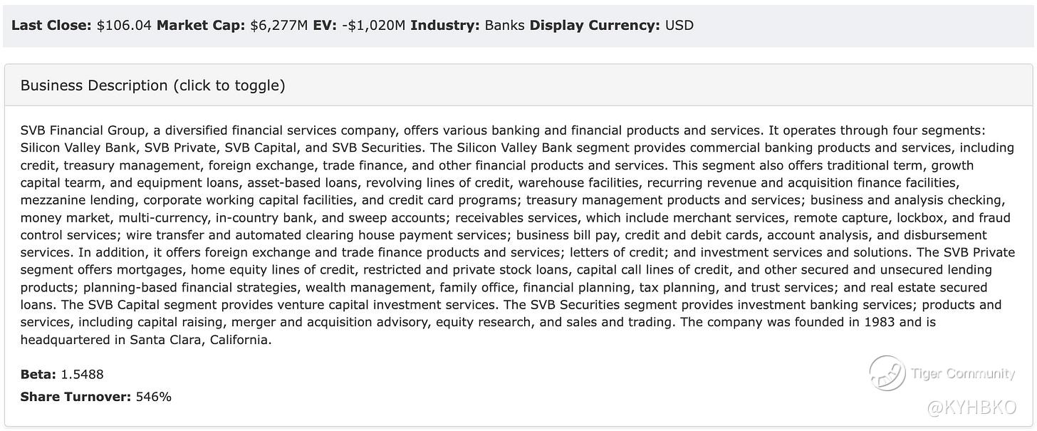 SVB operates in 4 segments and is an integral of the US venture capital ecosystem in Silicon Valley.