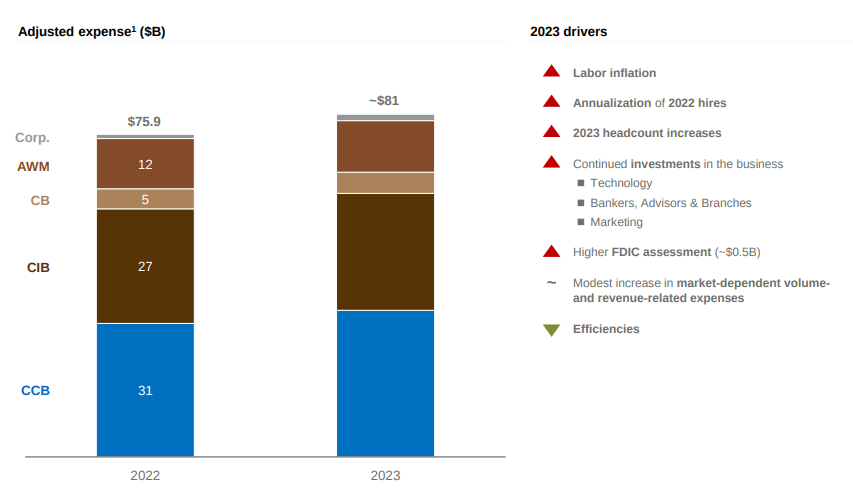 JPMorgan expects a 6.5% increase in expenses in2023, attributed to higher labor costs, additional hiring, and investments in technology, marketing, and building branches. However, despite revenue growth being outpaced by expense growth in 2022, JPMorgan's efficiency ratio remained strong and generated significant returns.