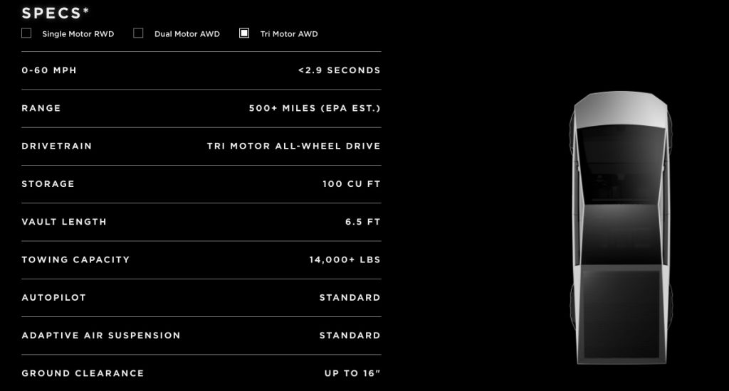 Cybertruck Specs(Tesla)