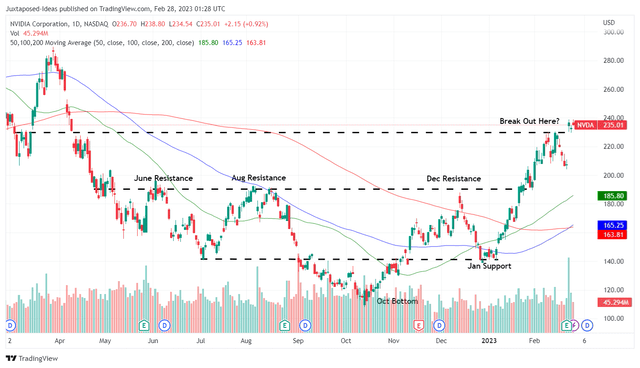 This is unsurprising since NVDA had recovered by +13.2% to $235.01 on the days after its FQ4'23 earnings call. Otherwise, the stock had rallied tremendously by +67.4% from the December 2022 levels of $140.36 and by +117.3% from October bottom of $108.13.