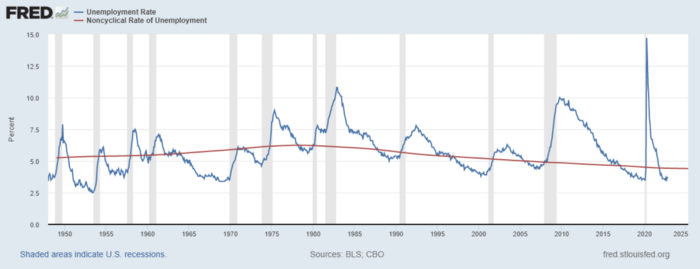 The current unemployment rate if 3.7% and the natural rate of unemployment is around 4.5%.