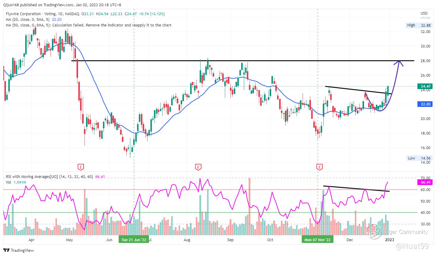 $Flywire Corp.(FLYW)$ Daily Chart [$24.47]
