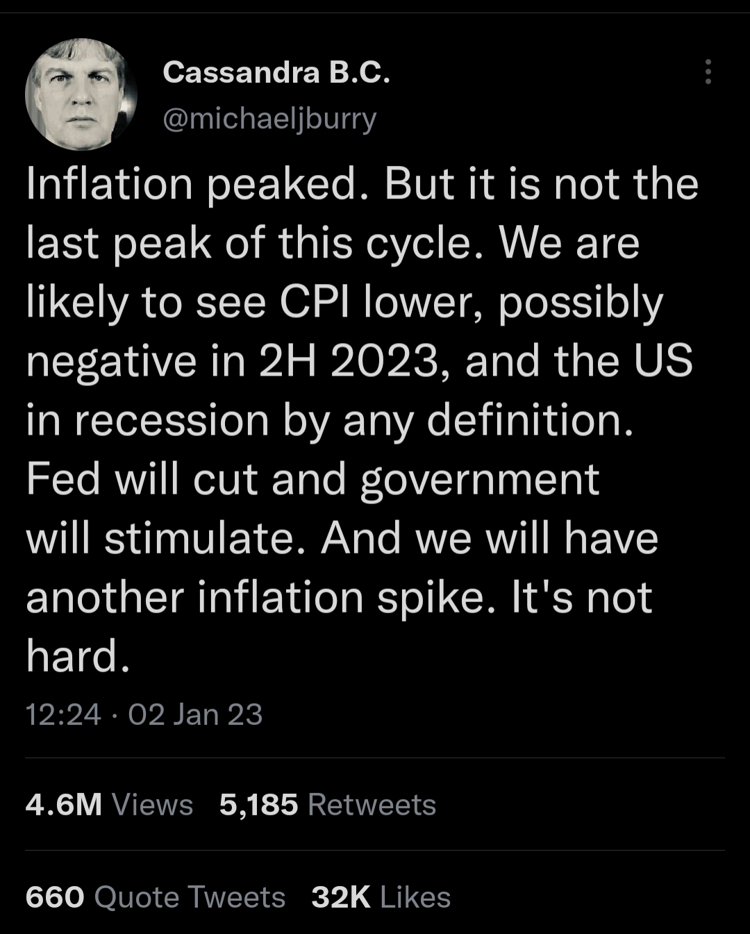 His recent views suggest that inflation has peaked and we will be getting lower CPI from now, this has to be great news for the stock market as this suggest that FED will likely have to change their stance to boost the economy and stimulate growth especially in a deflationary environment.