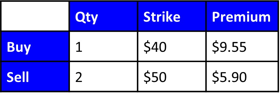 By selling the 2 $50 call options at $5.90 and selling the 1 $40 call option at $9.55, I effectively deployed the repair strategy and pocket $225 in the process. In theory, if the price of SHOP goes up to $50 at the expiry date then what happens is that the $40 call allows me to buy another 100 shares of SHOP at $40 each, bringing my total to 200 shares of SHOP at an average cost of $51.75. At the same time, the 2 $50 call options would be exercised, and I would have to sell my 200 shares at $50 each. My losses then would be $1.75 per share for 200 shares or $350 instead of $13.50 per share for 100 share or $1350 if I had not used the repair strategy. Furthermore, should the price of SHOP increase further to say $80, I would not be able to benefit from it, and I will have to remain with the $350 loss instead of enjoying a gain of $16.50 per share for my original 100 shares.