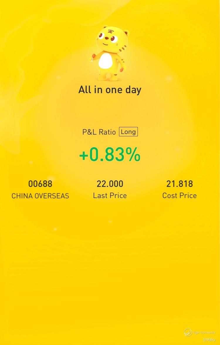 $CHINA OVERSEAS(00688)$ waited for a few months for it to finally turn green