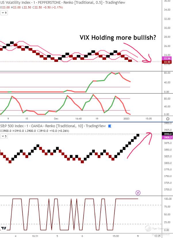 $E-mini S&P 500 - main 2212(ESmain)$ ) looking to hold more bullish? Encouraging signs for a S&P500 rally in January?! (see attached chart of inverse strategy VIX vs SP500)