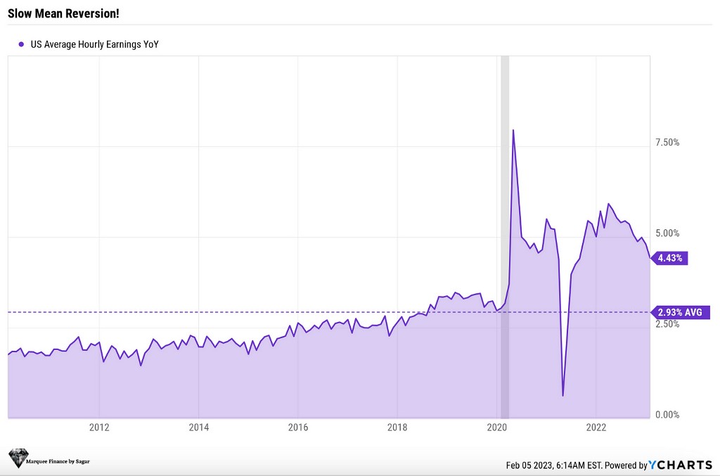 Though the UR remains low, the leading indicator of the labor market: The Average Hourly Earnings (AHE) which was sticky, has started to soften from the highs.