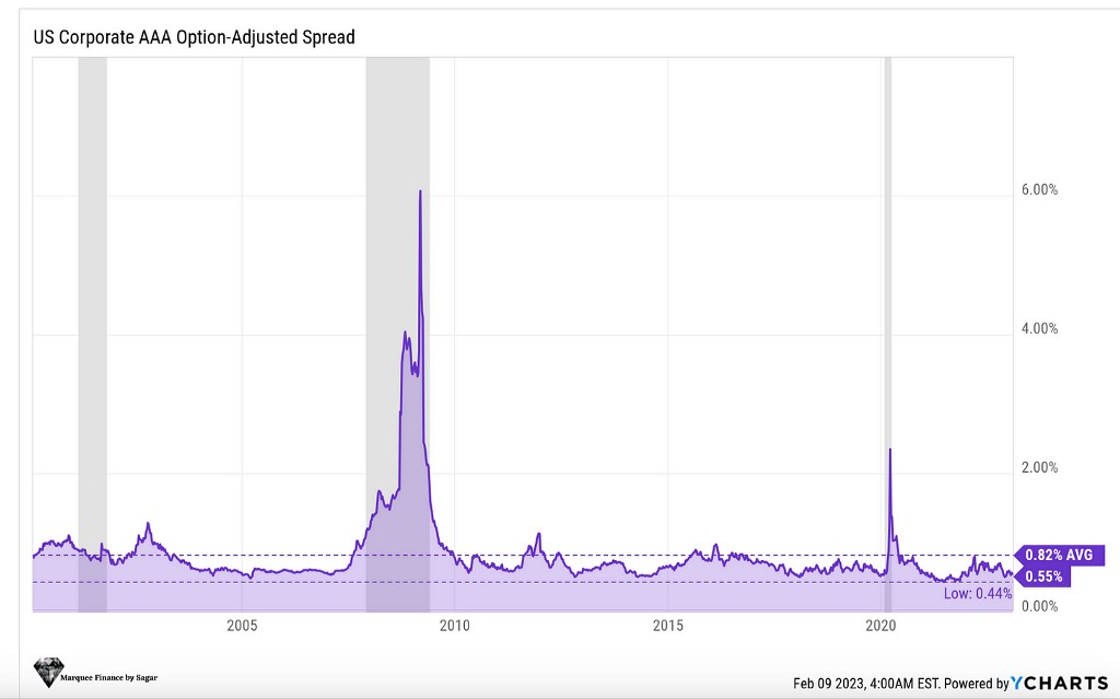 Even the AAA-rated Investment Grade (IG) credit spreads are just 11 bps from the all-time lows achieved during the euphoric times of 2021.