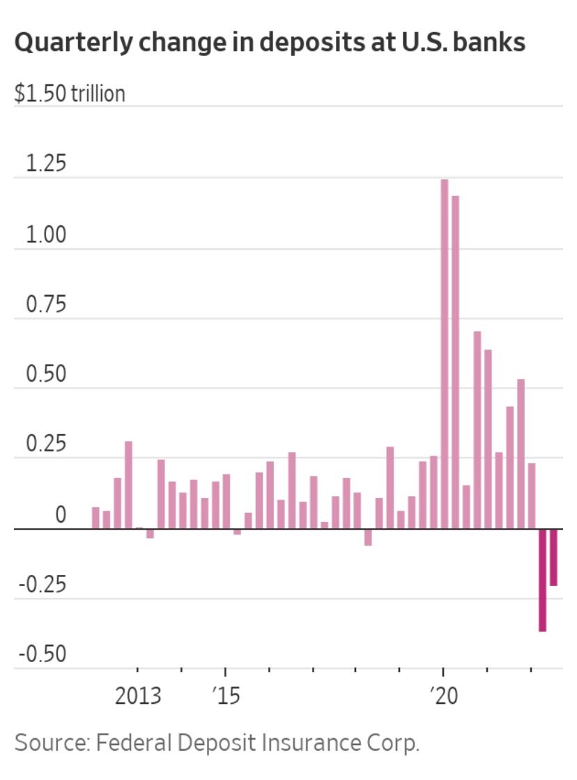 The credit event, if likely, will emerge in the shadow banking sector as the liquidity dries up due to the ongoing QT by the Fed and the deposits exodus from the banking system as MMF (Money Market Funds) offer “significantly” higher yields (>4%) than bank deposits (still hovering around 0.5–1%).