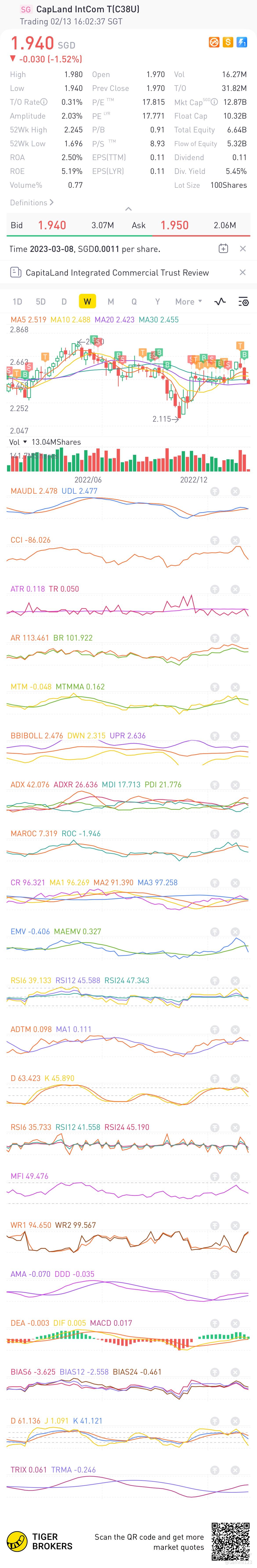 $CapLand IntCom T(C38U.SI)$ waiting bounced back to 2.10