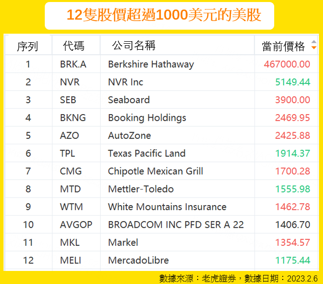 你知道美股最貴的股票是巴郡A$伯克希爾(BRK.A)$ 嗎?一股高達466,363.14美金(截止2023年2月6日報價)!