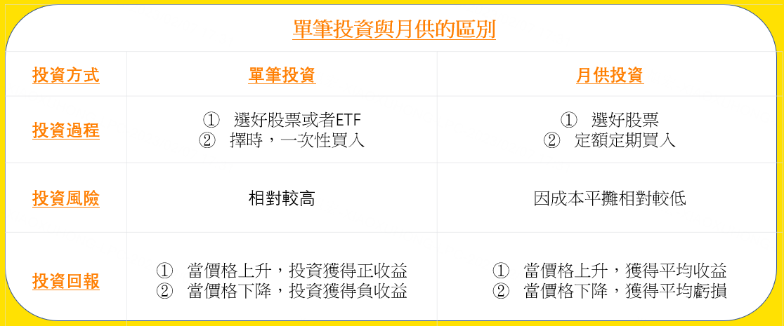 下面將介紹一下單筆投資和月供的區別,月供的好處,月供適合什麼人,如何提高月供收益,什麼適合月供的內容,希望對你投資有幫助。
