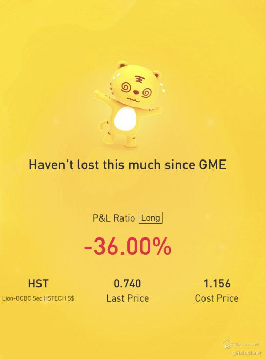 Investing in $LION OCBC HSTECH ETF S$(HST.SI)$ was a very painful lesson for me in my first year of investment journey. I have learned not to average down the cost price of the stock unless it has dropped a quite substantial amount and I have to do my own due diligence before investing a stock & not just follow blindly to what the analyst said as they might not be right all the times.