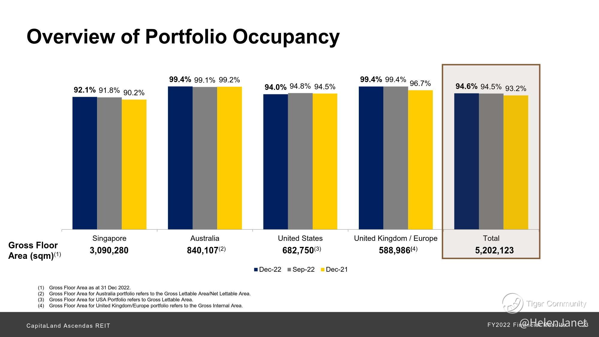 Overall, the portfolio occupancy rate recorded a 10-year high of 94.6% (30 September 2022: 94.5%) driven by improvements in Singapore and Australia.