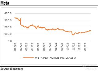 $Meta Platforms, Inc.(META)$ 4Q22 earnings beat estimate even though sales continue to decline for straight quarters as it faced a slew of challenges from Apple’s iOS privacy tweaks to competition from other social media platforms last year. The recent financial discipline was welcome by investors, with Meta reducing 11k or 13% of its workforce which could reduce expenses substantially for the year. The growth of its free cashflow could not only come from cuts to operational expenditure but also a reduction of its capital expenditure. Meta is currently trading at 19.4x/15.4x of FY23/24 consensus price to earnings ratio. It is also noteworthy, that rival Snap (SNAP US) who reported, points that the slump in the advertising market could have bottomed.