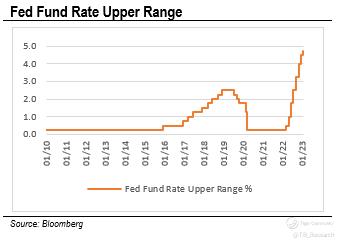 The European economy eked out a marginal GDP growth of 0.1% in 4Q22 as it grapples with multiple challenges from an energy crisis and ongoing geopolitical tensions. However, the German economy, the largest economy within the EU, surprised negatively with a contraction of -0.2% raising the potential of a recession. The ECB is expected to further tighten monetary policy with another 50bps point rate hike this week which could add further pain for the economy.