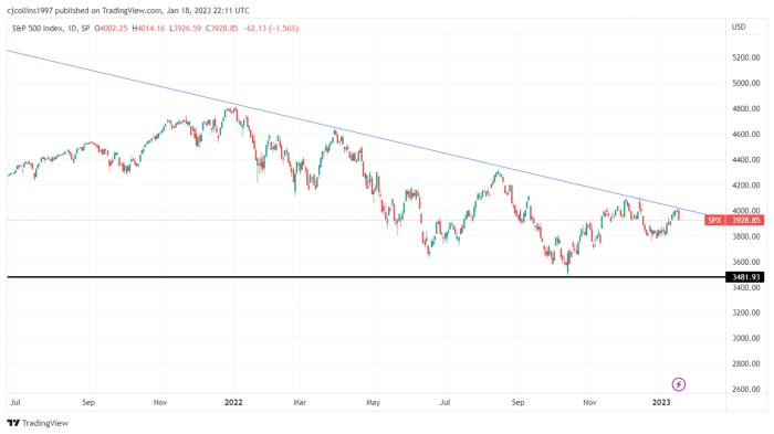 The black horizontal line is the low from the freefall earlier in 2022 — around 3,500.