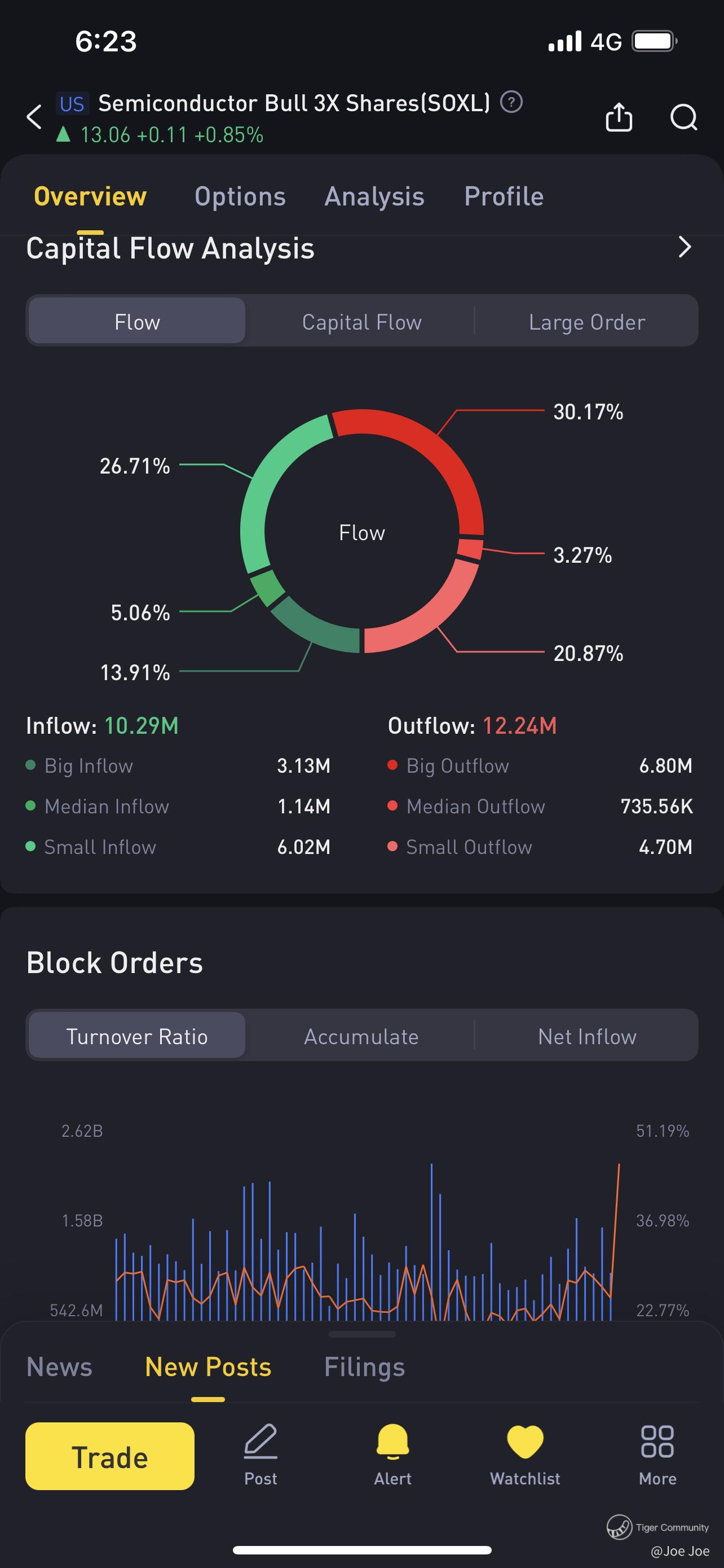 RSI reach oversold line, some traders might choose to exit for profit taking. We also can see that the Big fund outflow suddenly shoot up when it hit 13.4, I guess they probably buying back at 12.6.