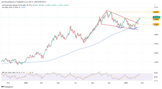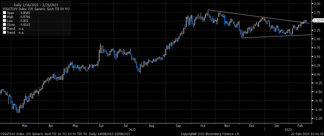 We're also seeing the 10-year real yield break higher, and it could rise back to its prior highs of around 1.75%.