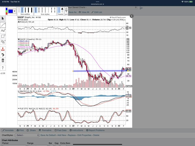 Really like $Shopify(SHOP)$ chart. Picture perfect inverse head and shoulder bottom. Broke out with increased volume and pulled back with decreased volume. In addition to shares I bought several weeks ago, I sold puts and bought calls on it today.