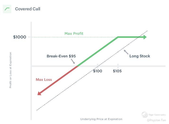 Covered Call = Long 100 Shares + Sell 1 Call Option