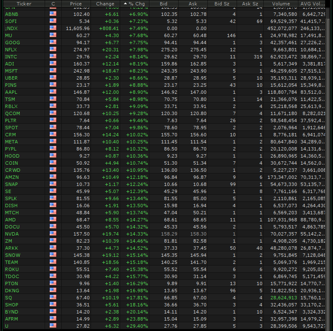 $Apple(AAPL)$ $Alphabet(GOOG)$ $Alphabet(GOOGL)$ $Microsoft(MSFT)$ $Meta Platforms, Inc.(META)$$Amazon.com(AMZN)$ $Micron Technology(MU)$ $Intel(INTC)$ $Qualcomm(QCOM)$ $Taiwan Semiconductor Manufacturing(TSM)$ $SoFi Technologies Inc.(SOFI)$ $Netflix(NFLX)$ $Uber(UBER)$ $Roblox Corporation(RBLX)$ $Pinterest, Inc.(PINS)$ $Spotify Technology S.A.(SPOT)$ $Palantir Technologies Inc.(PLTR)$ $Salesforce.com(CRM)$ $PayPal(PYPL)$ $Coinbase Global, Inc.(COIN)$ $Snap Inc(SNAP)$ $CrowdStrike Holdings, Inc.(CRWD)$ $Sea Ltd(SE)$ $NVIDIA Corp(NVDA)$ $AMD(AMD)$ I mean is there undervalued quality on this list? For sure! But common, not the shitcos like $Peloton Interactive, Inc.(PTON)$ $Teladoc Health Inc.(TDOC)$ $Affirm Holdings, Inc.(AFRM)$ etc.
