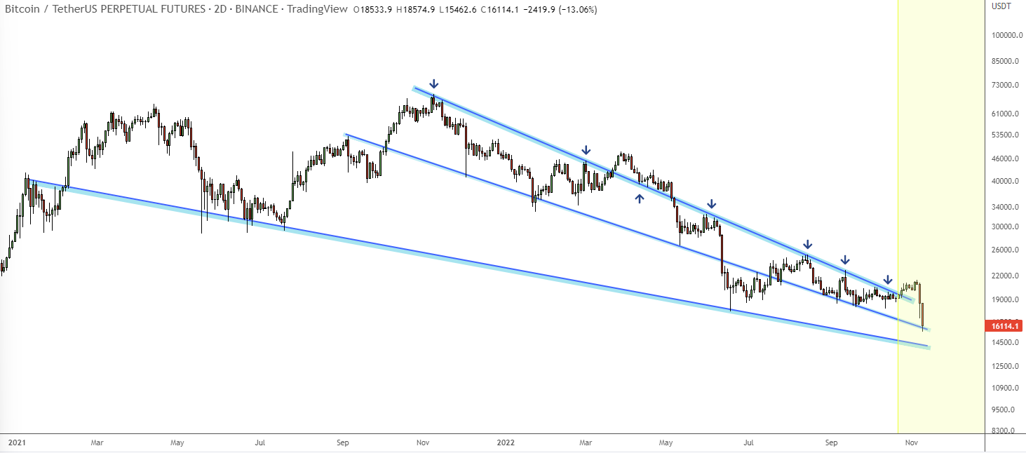 The next trendline (potential) support levels are 15900, followed by 14200.