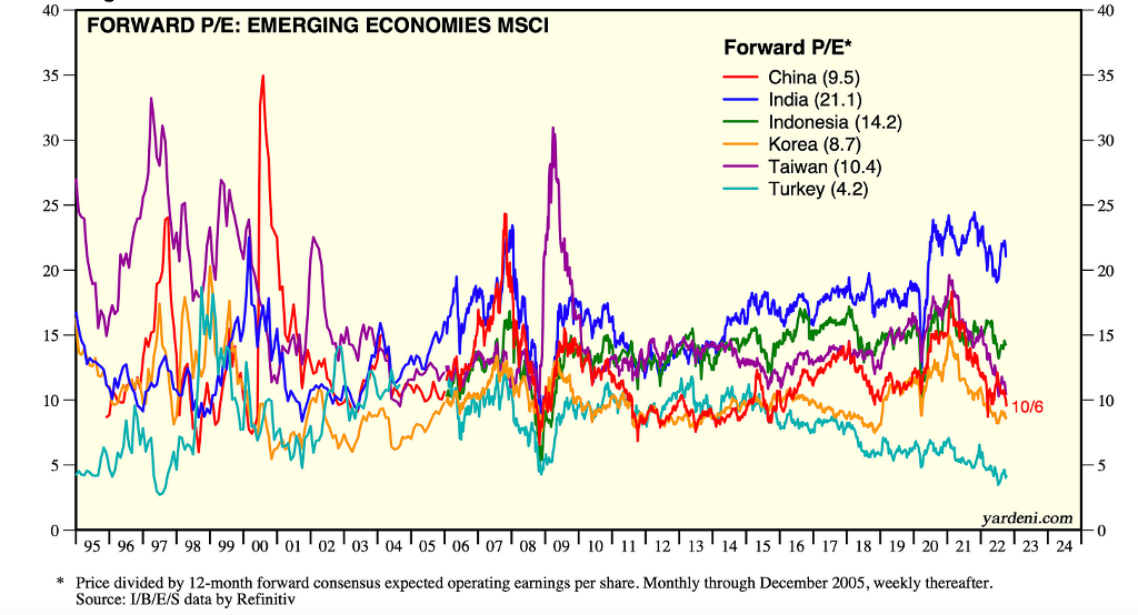 The valuation compression can describe this substantial discount in the Chinese, Korean and Turkish equity markets. On the other hand, India has been one of the biggest outperformers, and the Indian market now trades at a significant premium to other EM markets.