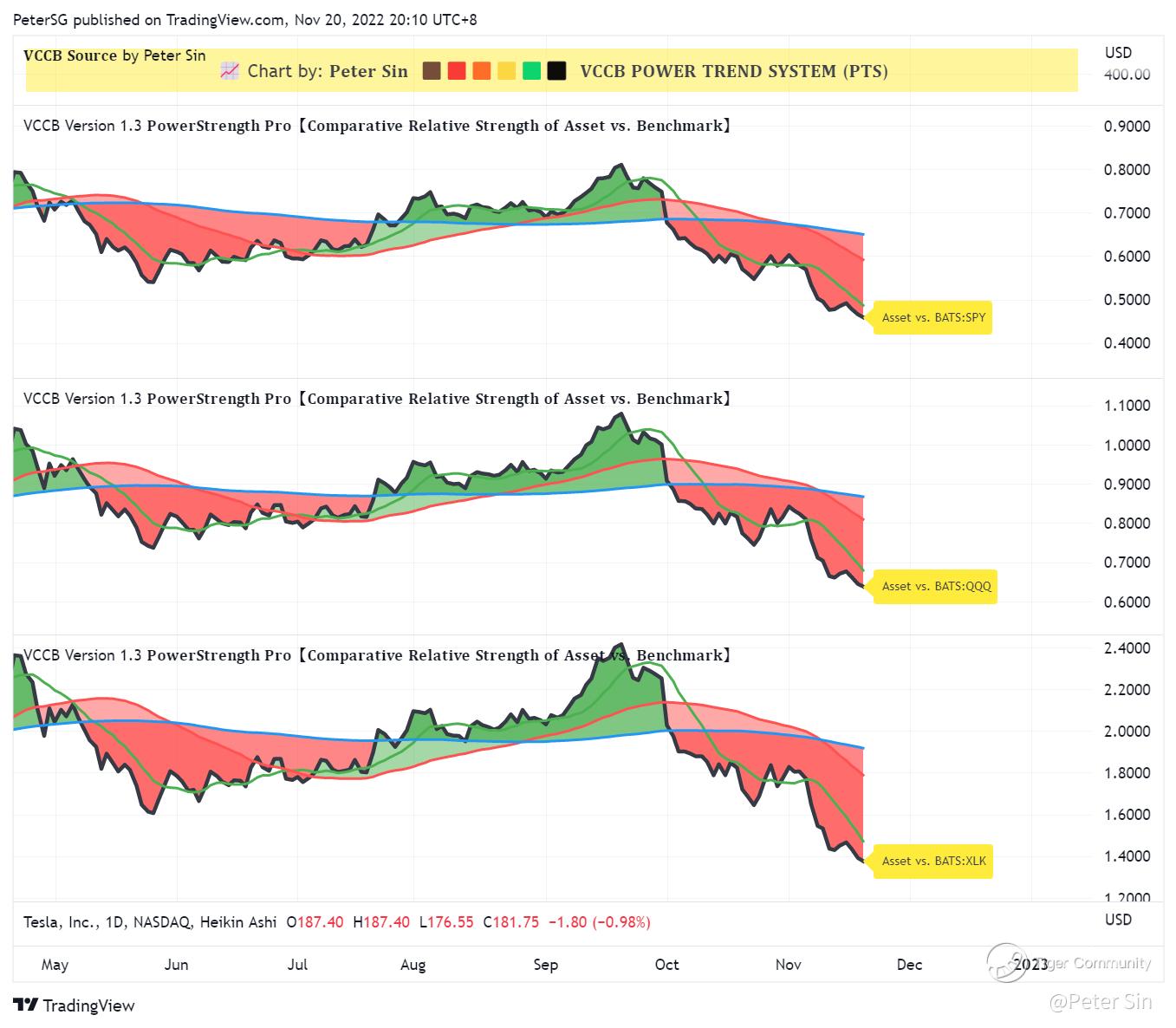 TSLA - PowerStrength - Comparative Relative Strength against SPY, QQQ, XLK - As of 20/11/2022